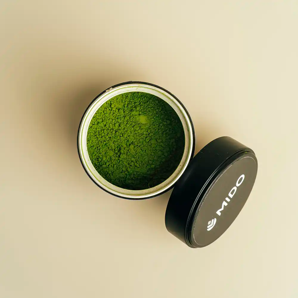 Opplev ekte japansk matcha av ypperste kvalitet.Mido Ceremonial Grade Matchaer laget av økologisk dyrkede Tencha-blader fra Shizuoka, Japan. Bladene håndplukkes, skyggedyrkes i 3–4 uker for maksimal smak og næringsinnhold, og males tradisjonelt på granittstein til et fløyelsmykt pulver.